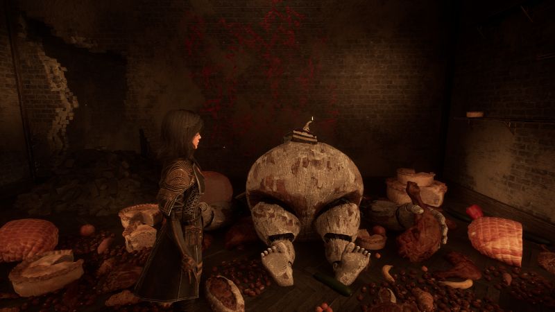 When you enter, look around for the Bust near some pots and pans like you see here. That will be the first item to interact with:
