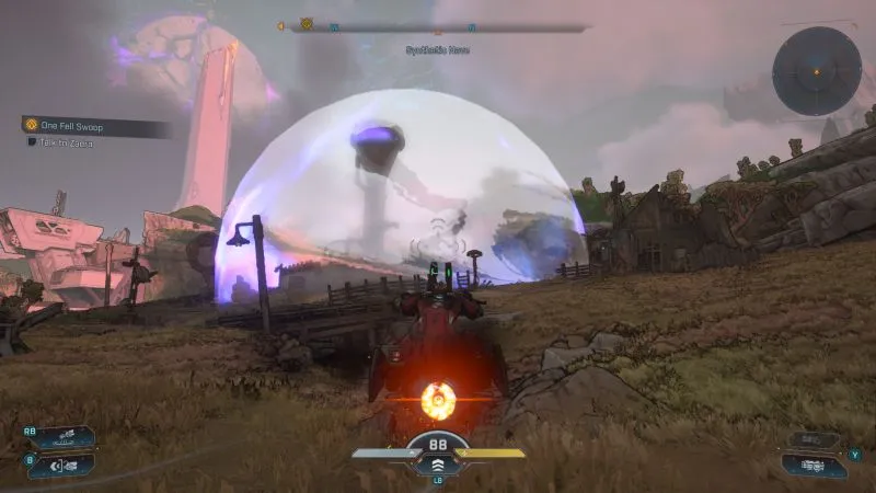 But between story missions and side quests, there are plenty of mini activities to find and do. Such as speakers to hack and kill enemies, patrols and bounties that give loot and XP as rewards, and my personal favorite, Rift Champions. Rift Champions are open-world bosses that appear in translucent bubbles around certain locations.