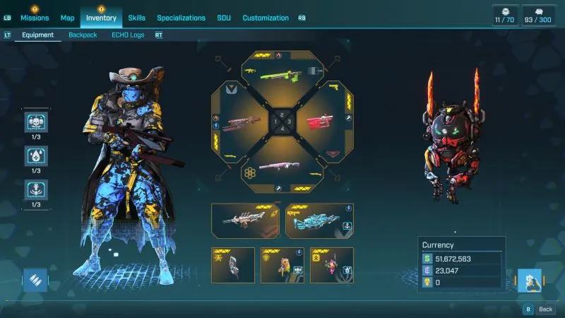 The UI in Borderlands 4 is an interesting new take that feels like a step down from previous games. Where previous entries felt like you were looking at a small and concise menu projected on screen, this game feels like a run-of-the-mill menu layout complete with a Destiny 2-style cursor. Navigating took some getting used to, but it still feels like an odd step backwards. Especially when you need to hover the mouse over dedicated currency and ammo tabs to see how much you have.