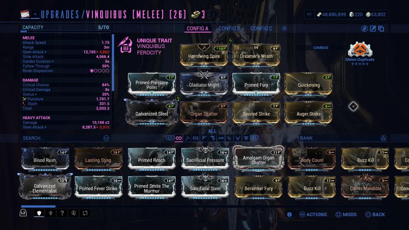 Similar to the Rifle version, I went for a pure critical build that uses Dreamer’s Wrath, Melee Duplicate, and Galvanized Steel alongside normal damage boosting mods.