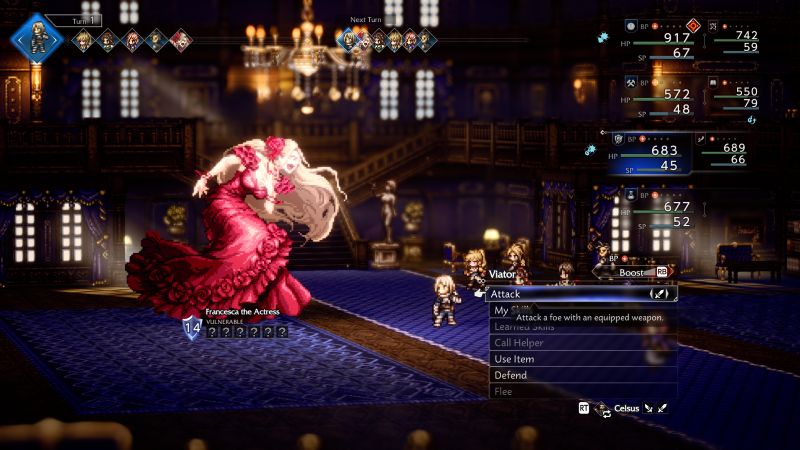 When characters are in the back row, they slowly regenerate health and skill points every turn. This allows you to give many characters the rest they need. Such as Alfyn from the first game, sitting in the back row to remain fully healed while Primrose offers a buff to his damage before swapping to the front to use a serious damage-dealing ability once a boss is in its broken state.