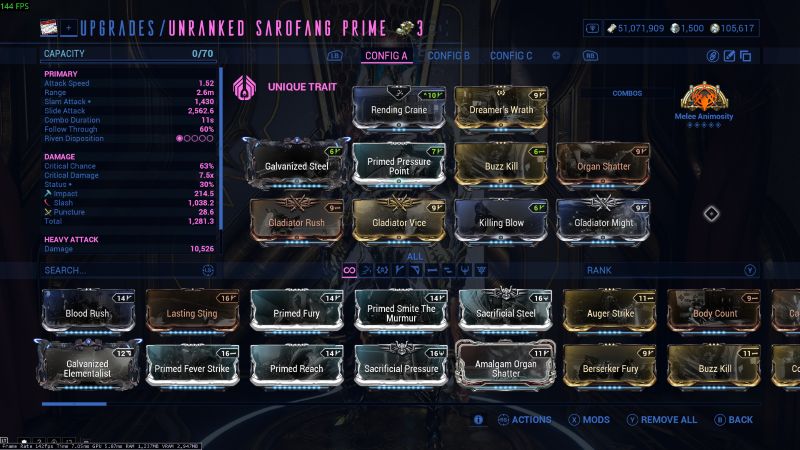 When it originally came out in 2022, Sarofang was just an ok weapon. But now with modern mods, arcanes and Tennokai, its Prime variant shines brightly. It hits like a truck and is an excellent signature weapon for Voruna Prime. Definitely go out and farm for it, and the Perigale Prime. They are all excellent additions to your arsenal in Warframe.